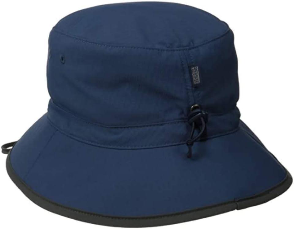 This bucket offers UPF 50. sun protection. The shorter brim is more stable in gusty conditions, but still offers sun protection. A drawcord adjustment keeps it firmly attached to your head.