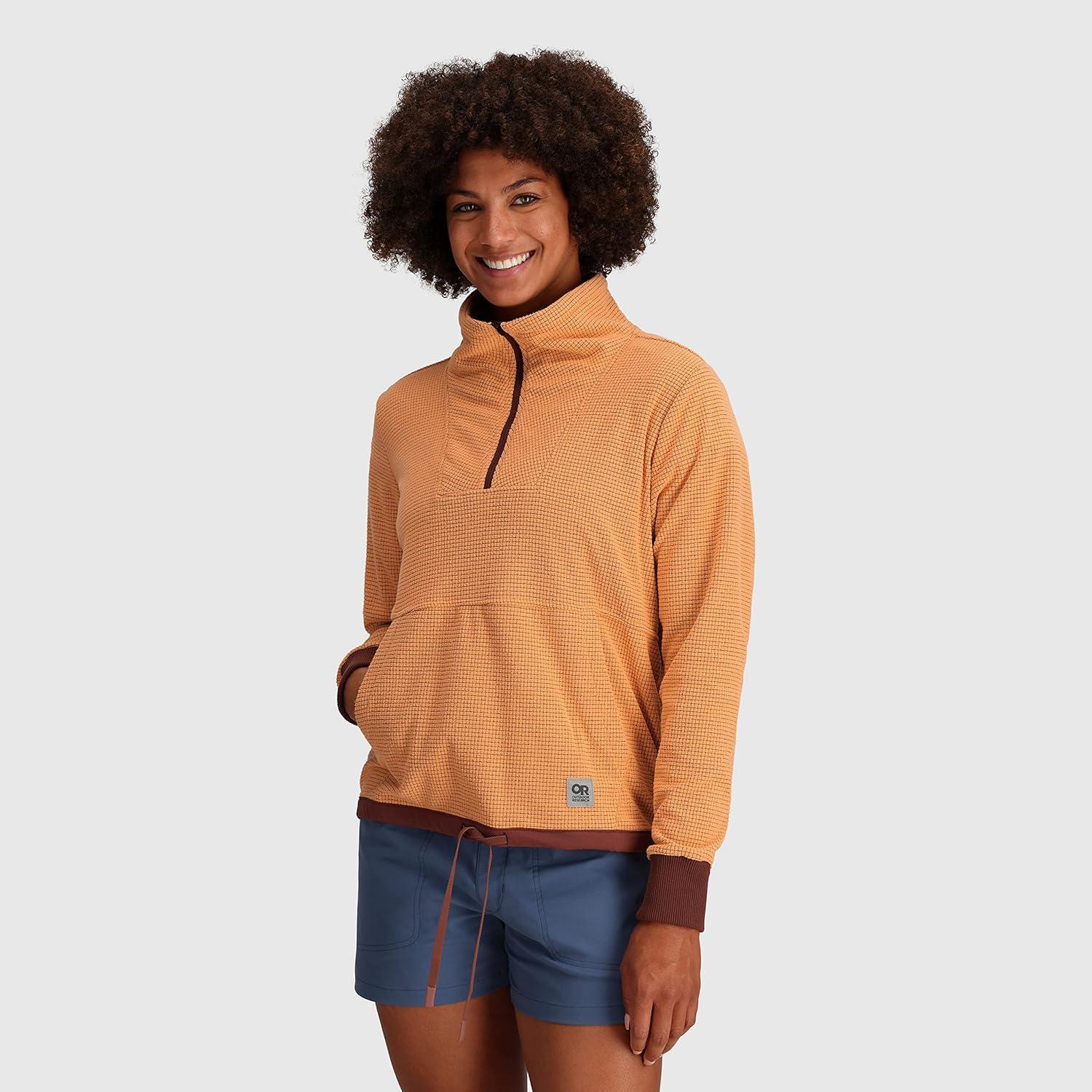 Outdoor Research Women’s Trail Mix Snap Pullover – Wicking Thermal Pullover for Women(Orange Fizz/Brick)