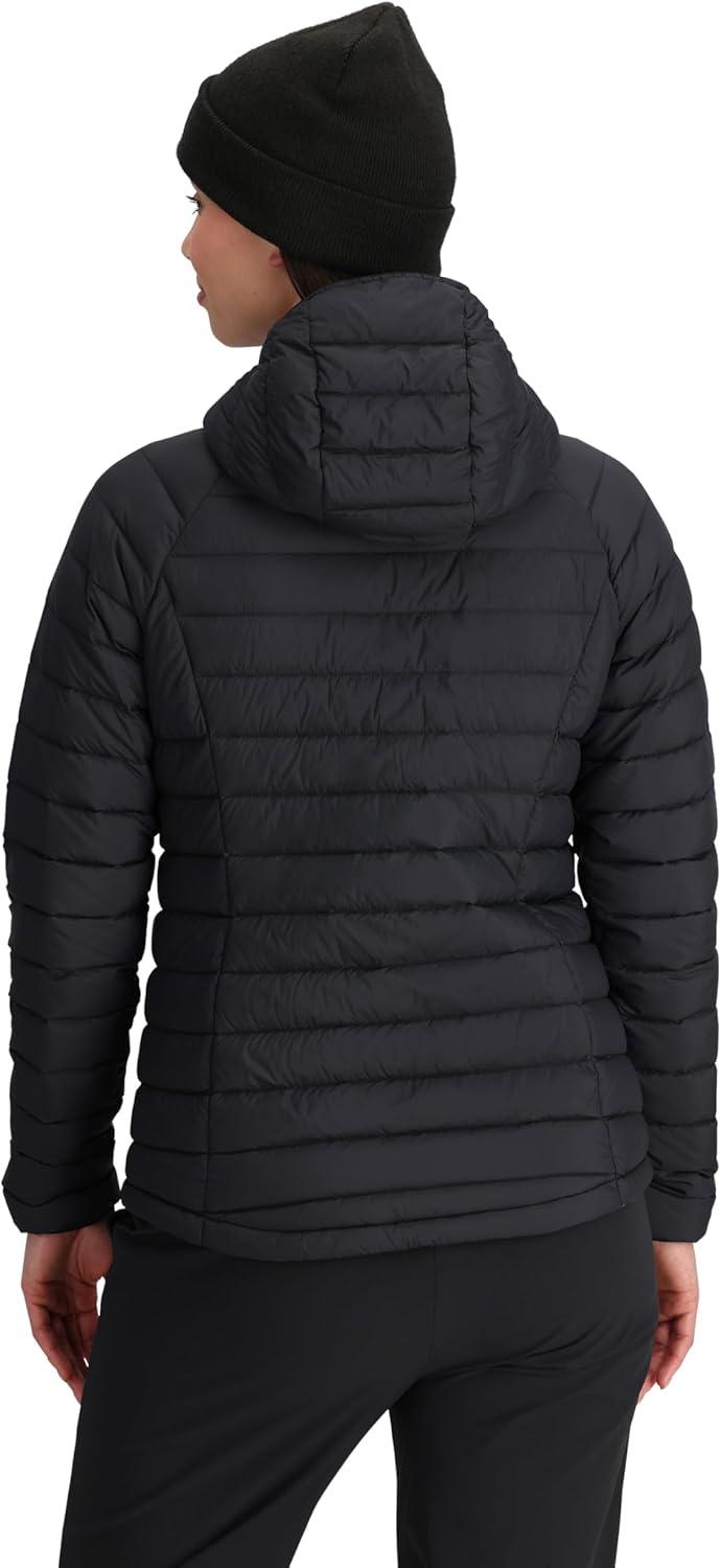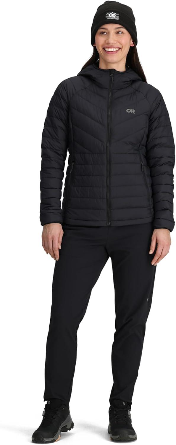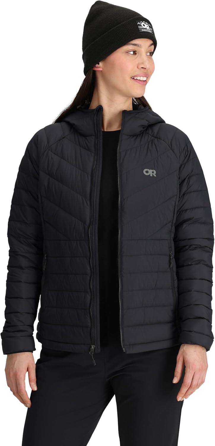 Outdoor Research Women’s Transcendent Down Hoodie Jacket | Water & Wind Resistant, Insulated, Lightweight, Standard Fit(Black)