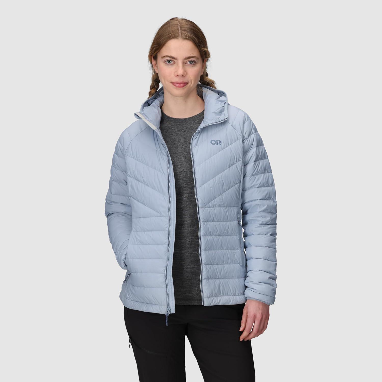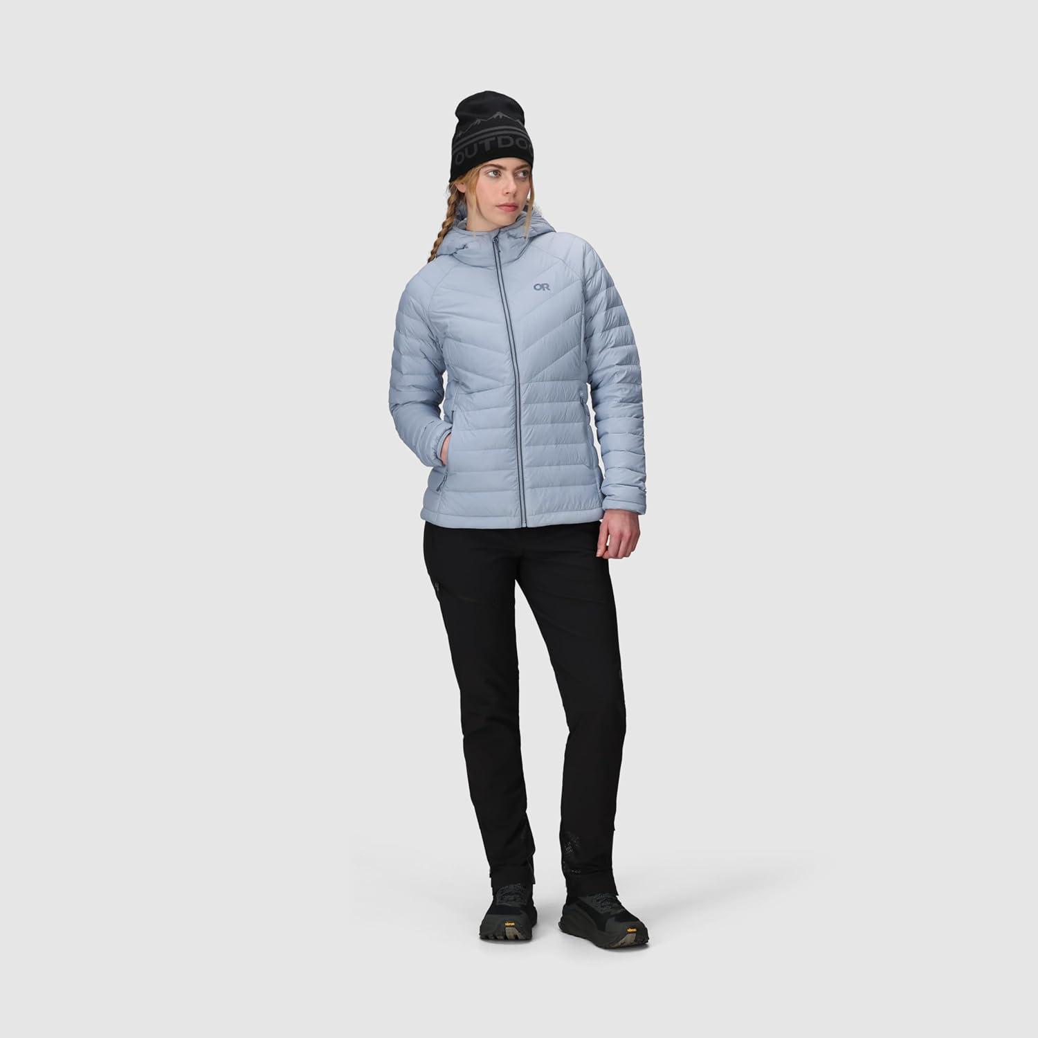 Outdoor Research Women’s Transcendent Down Hoodie Jacket | Water & Wind Resistant, Insulated, Lightweight, Standard Fit(Fjord)
